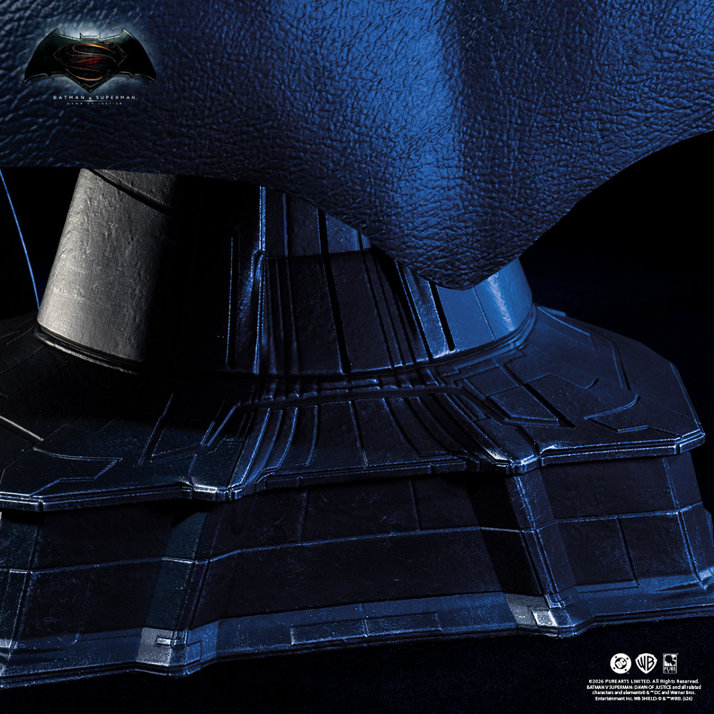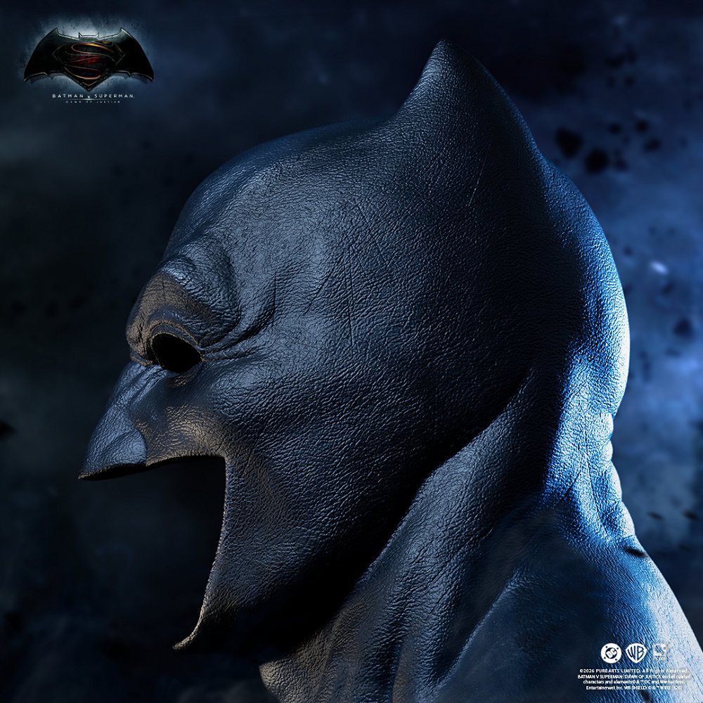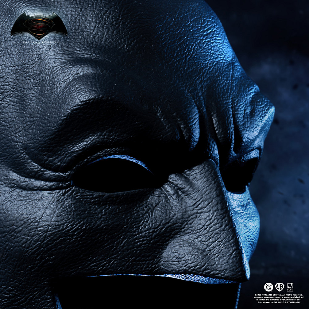 本作出自電影《蝙蝠俠對超人:正義曙光》,故事描述在蝙蝠俠與超人理念衝突之下,兩位英雄從猜忌走向對立。布魯斯・韋恩因目睹外星之戰帶來的毀滅,對超人產生強烈不信任,進而打造更為厚重且充滿威嚇性的戰鬥裝備。這款面具正是該時期蝙蝠俠形象的代表——更加黑暗、更加極端,也更加人性化。